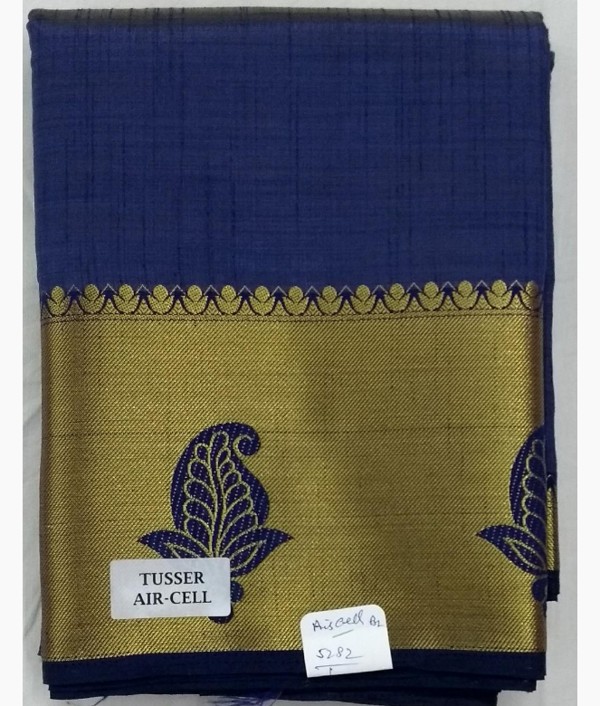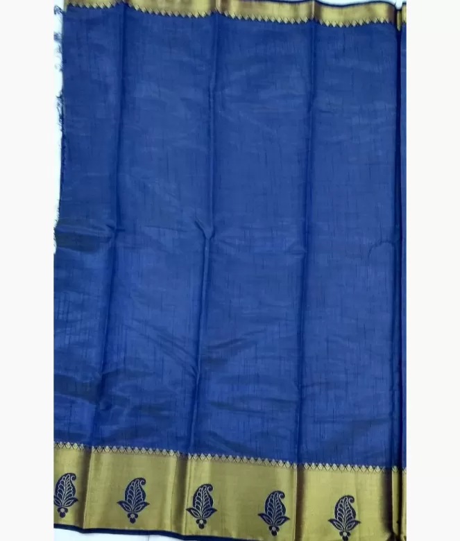 All over plain khadi silk saree with golden colour strips on pallu.