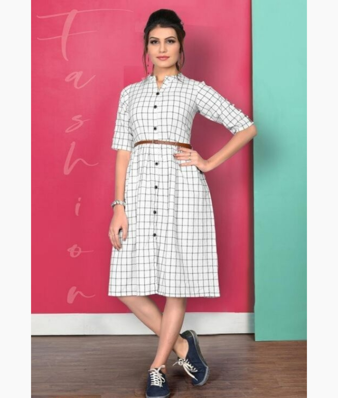 Featuring this amazing western dress with a check print on the complete dress. The dress is till knee length with a front belt on the complete dress. The dress is perfect for office wear and light parties. The dress can be paired with high heels to enhanc
