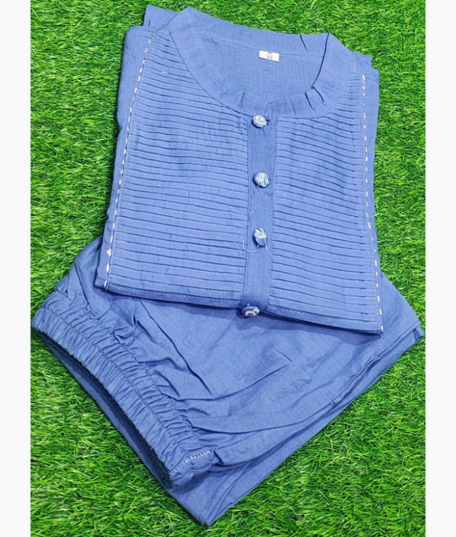 Amazing Stitched Embroidery Cotton Blue Kurta With Pant Collection