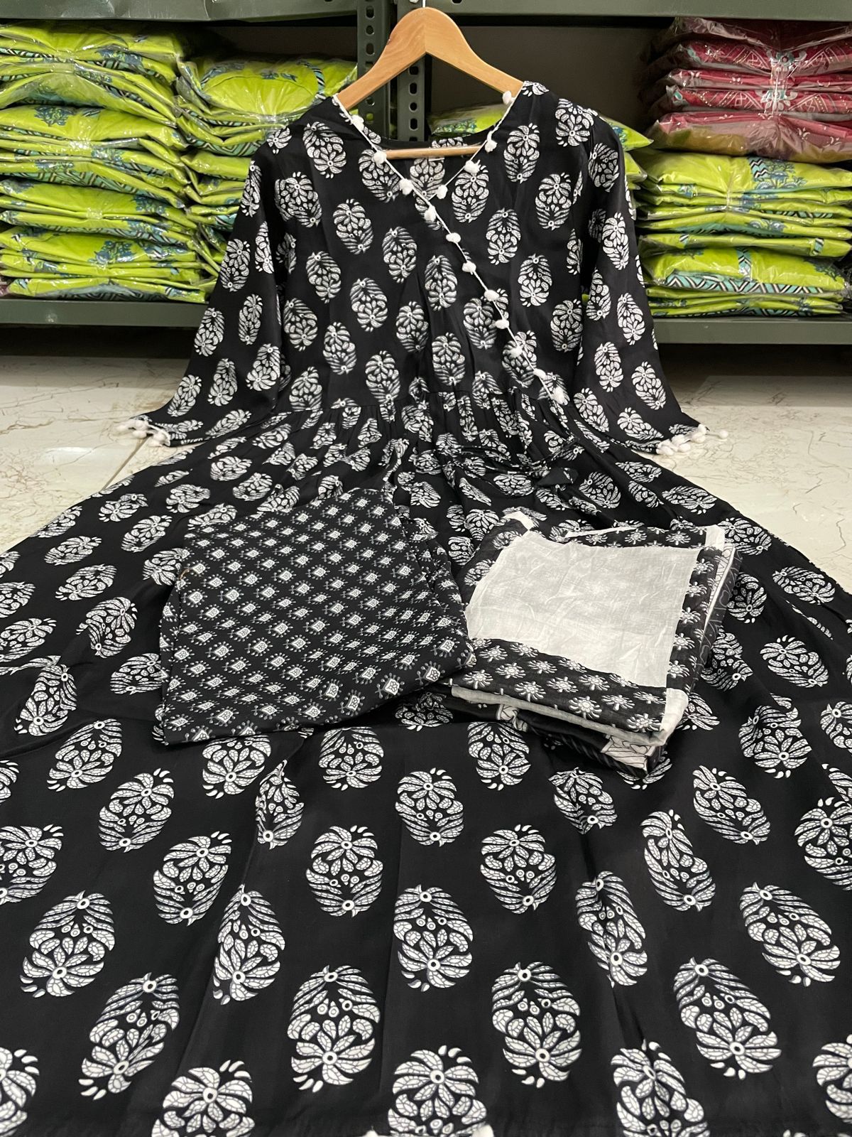 Type - Anarkali kurti with v neck style with pant and dupatta