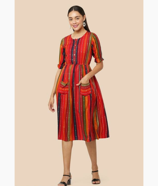 This is another attractive western dress from our collection. The knee-length dress is perfect for casual purposes and daily wear dress. the dress is in mixed print with different color combinations. The dress is perfect for light occasions as well. Compl