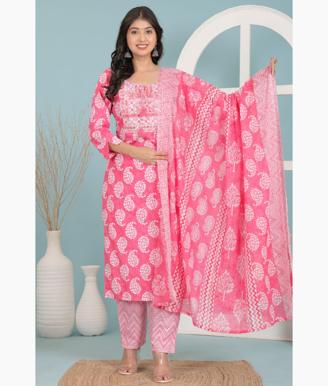 Elevate your ethnic wardrobe with this beautiful stitched embroidery cotton red suit set, a perfect blend of comfort, elegance, and traditional charm. Crafted from soft, breathable cotton, this suit set ensures all-day comfort while keeping you stylish. The kurta features exquisite embroidery work on the neckline, sleeves, and hem, adding a touch of sophistication and handcrafted beauty to the ensemble.