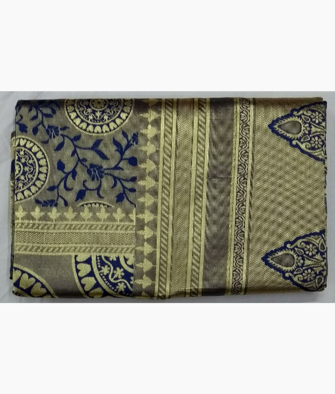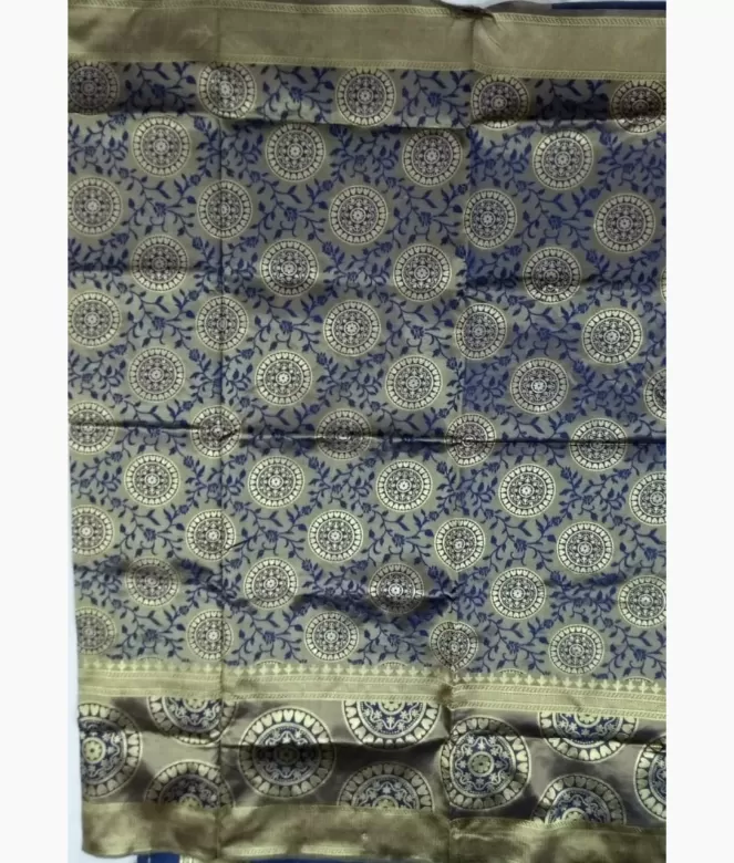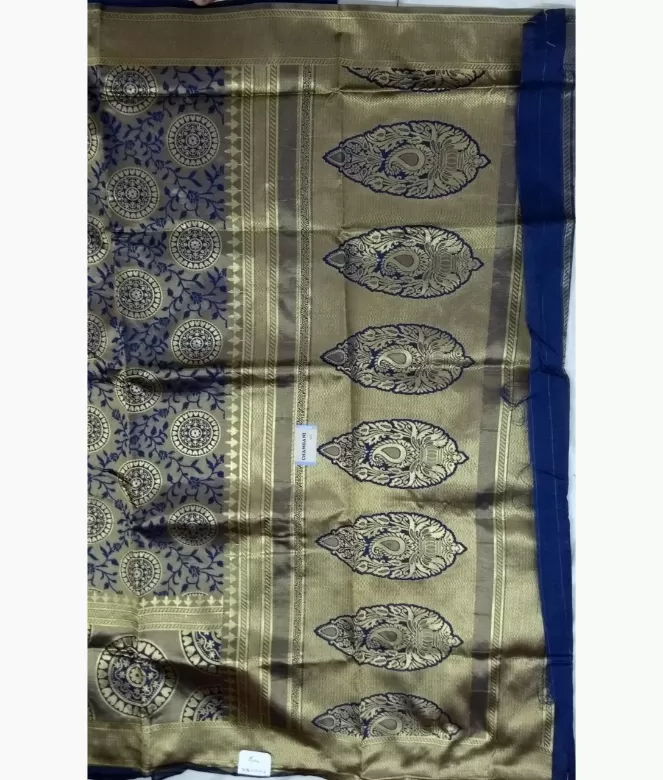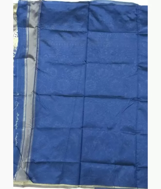 Border is of golden colour zari patti on saree with weaving design. Matching same saree colour is of blouse for all over work.
