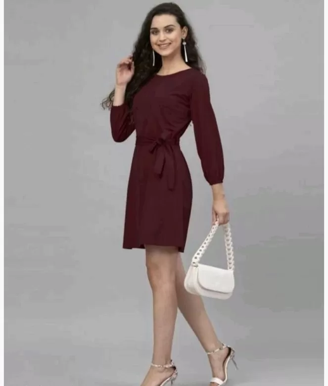 Presenting this extremely comfortable and smooth dress. The dress is stitched using high-quality crepe fabric to make your casual wearing more comfortable and stylish. The plain and attractive colors of the dress with a belt of the same color make it perf