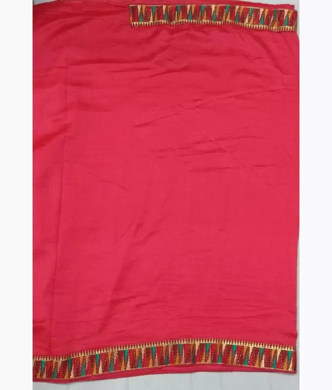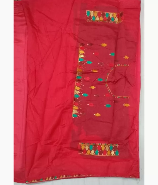 Border is of multi colour thread work with zari and sequences work of zig zag design on saree. Matching same work of saree is on blouse for neck and sleeves.
