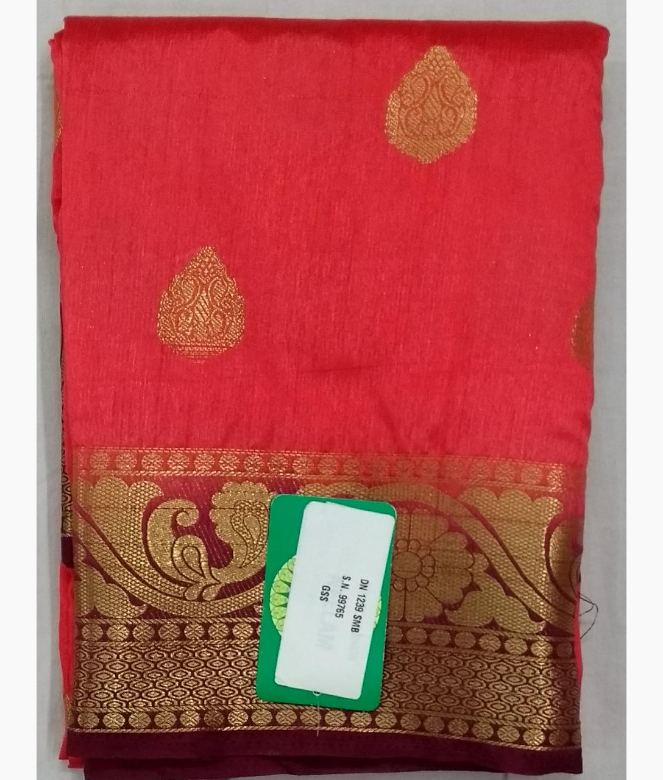 Border is of golden colour zari with weaving design work on saree in contrast colour. Matching same work of saree of is on blouse ambi booty and border in contrast colour makes your blouse stylish.