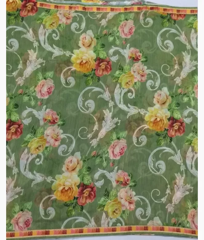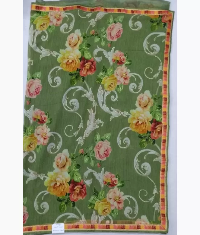 Border is of multi colour thread weaving with piping surrounding all over on saree. Matching same border of saree is on blouse patti for neck and sleeves in plain fabric.