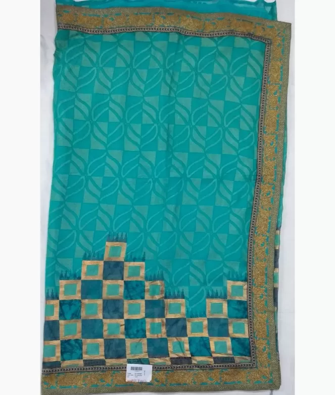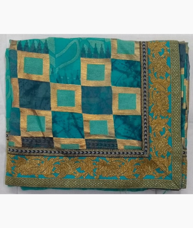 Border is of leaf flower design of weaving jaal on saree. Matching work of saree design and border is of blouse for neck and sleeves.