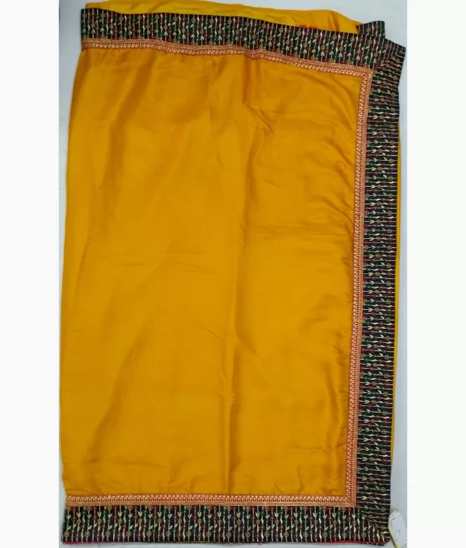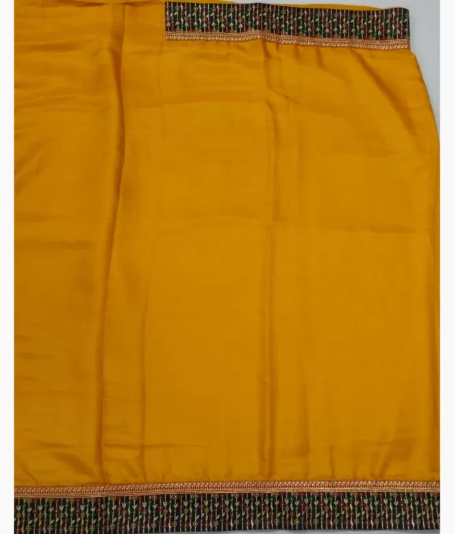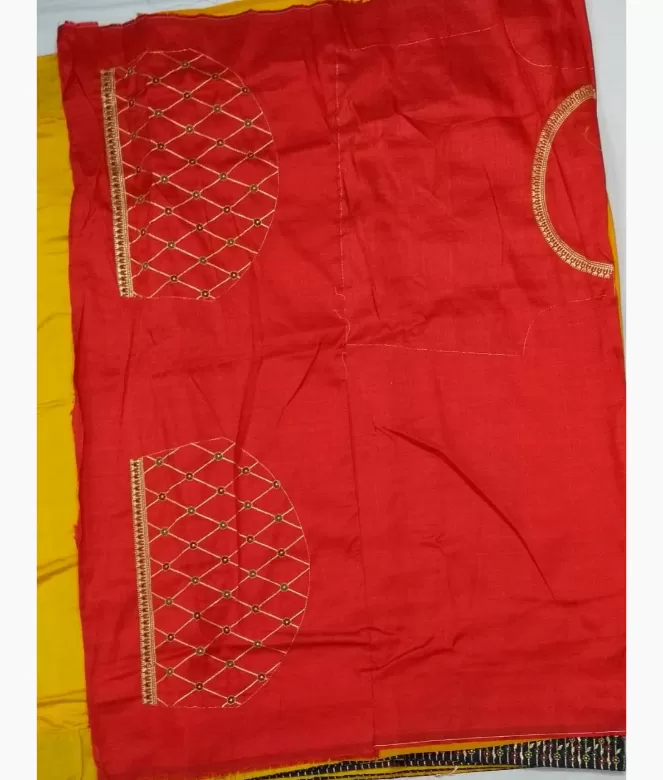 Border is of leaf and flower with multicolour thread and jari work on saree. Blouse is on contrast colour with fine work of zari thread for neck and sleeves.