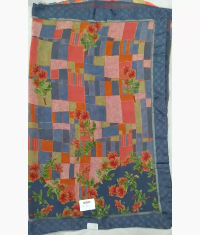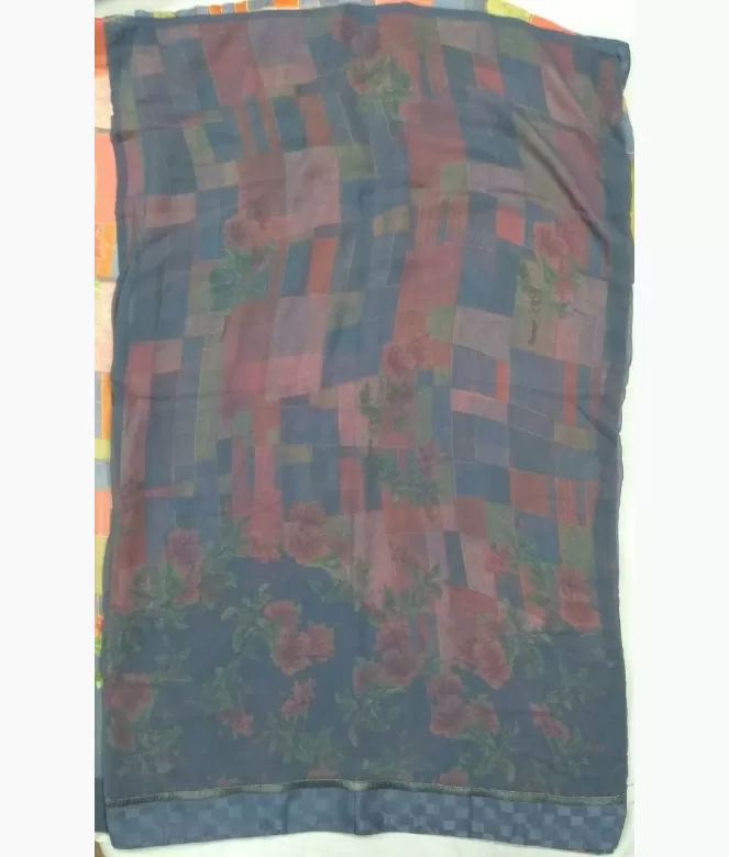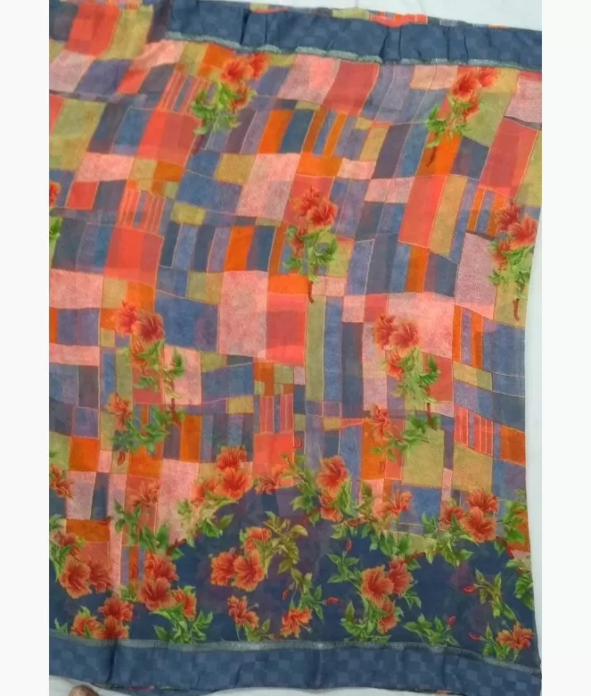 Border is of satin patti in chess design in self colour with silver colour zari small patti for pallu and panel of saree. Same border of saree is on blouse patti for neck and sleeves.