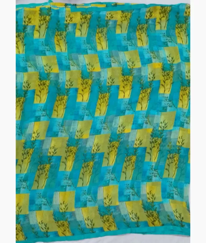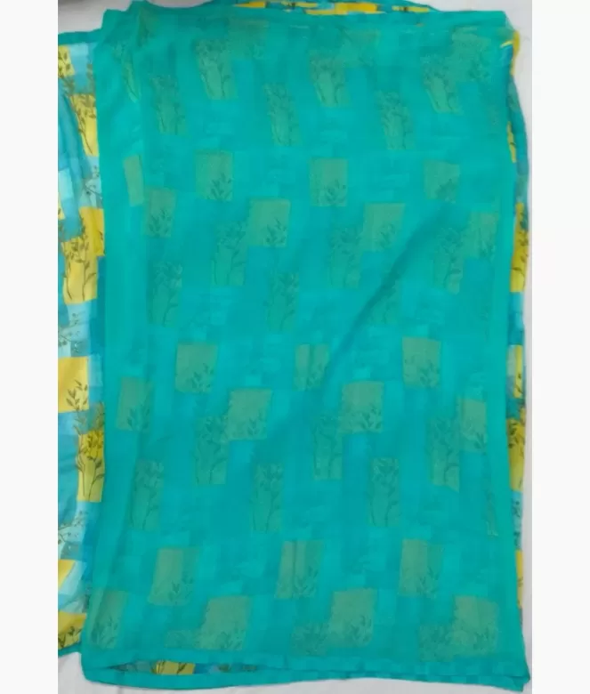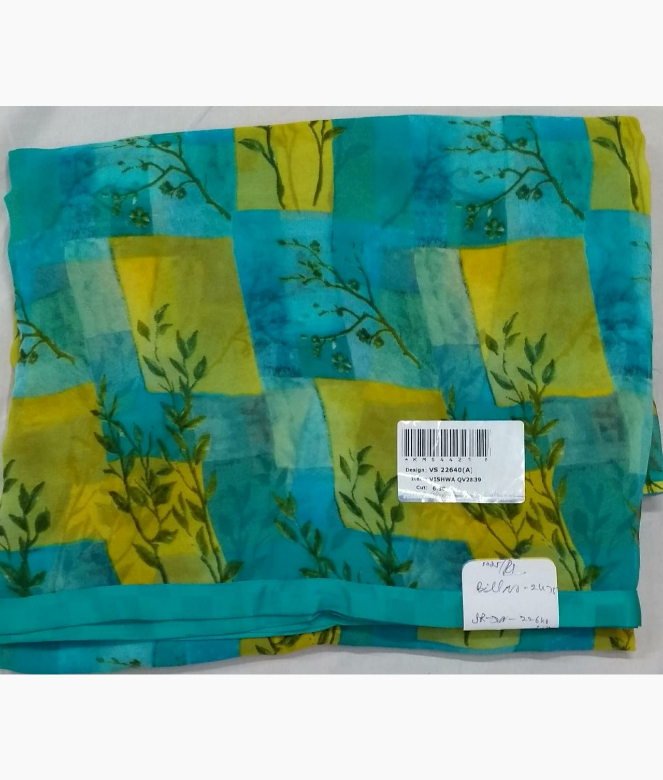Surrounding piping in same saree colour on saree. Border is of small satin patti on saree. Matching same border of saree of contrast colour is on blouse border patti for neck and sleeves.