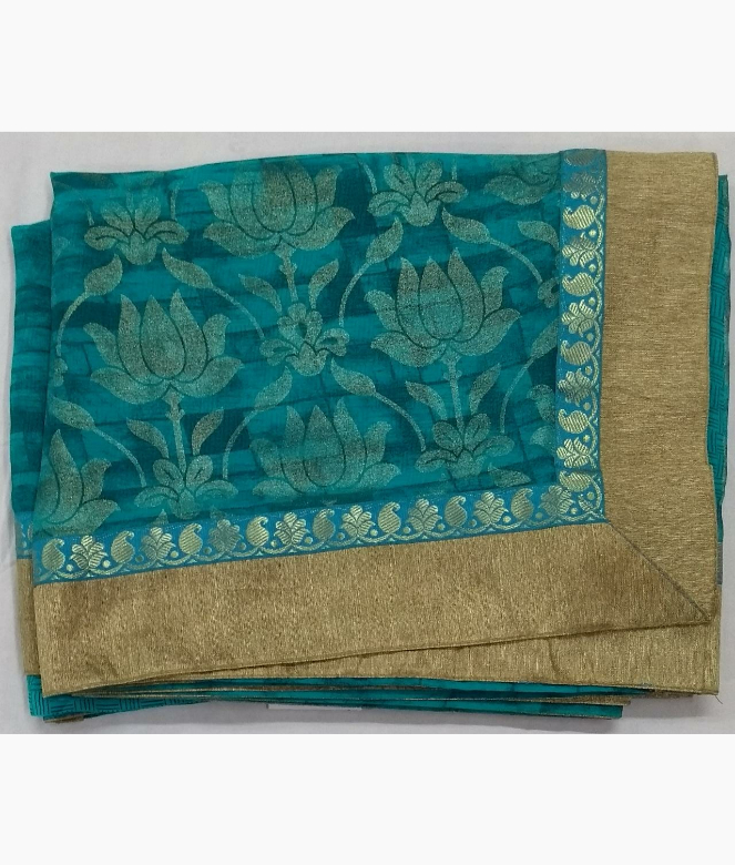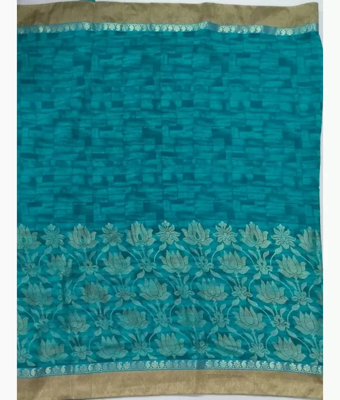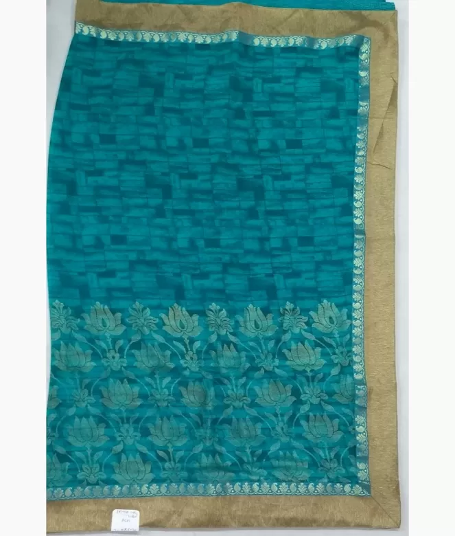 Border is of silver colour gota patti with big golden colour Patta on saree. Matching same border of saree is on blouse for neck and sleeves.