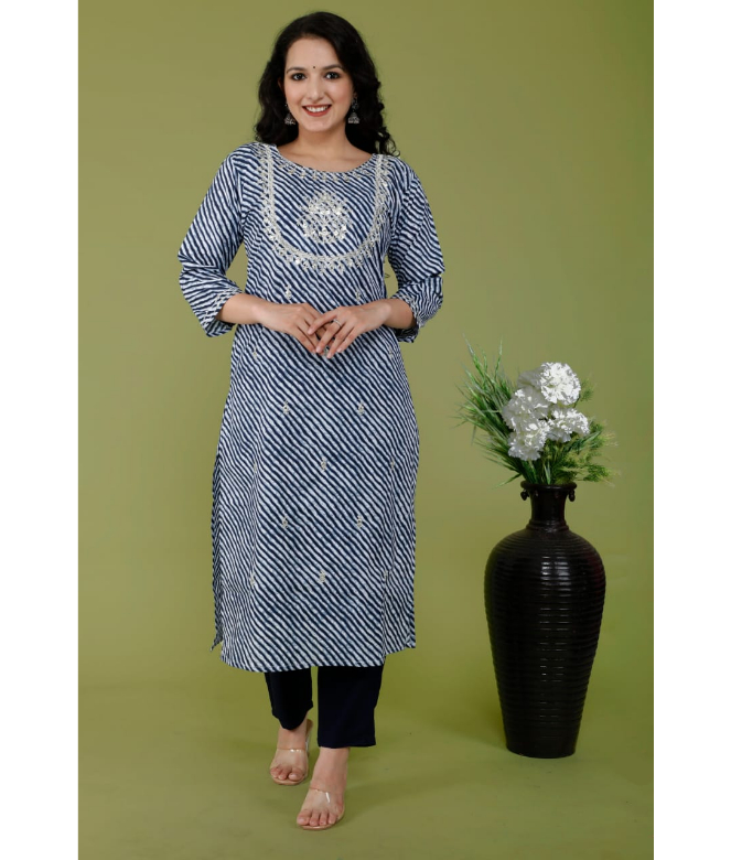 Look Special With Leheriya Print and Embroidery Work Kurti.