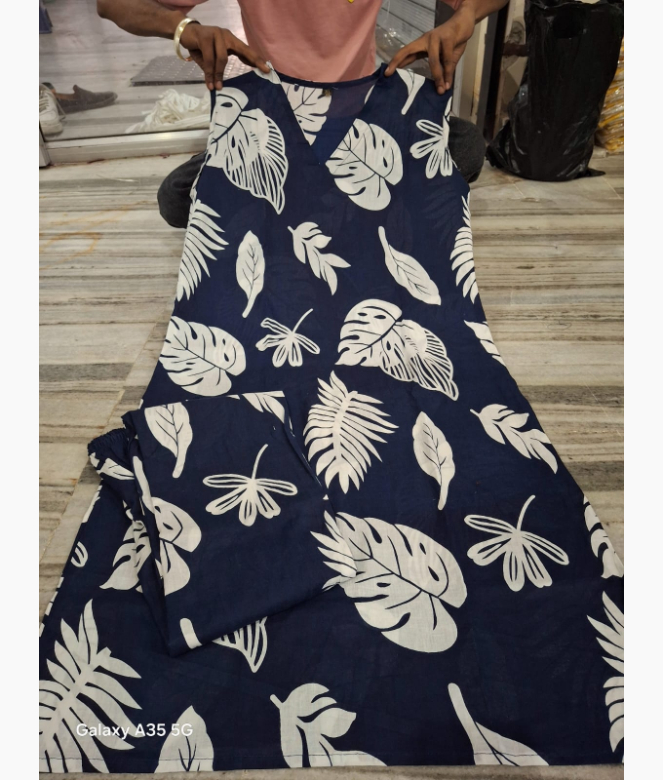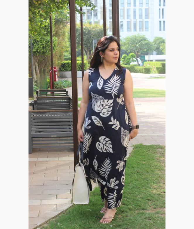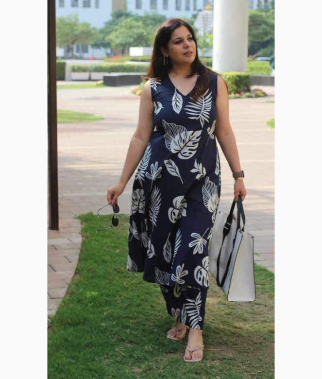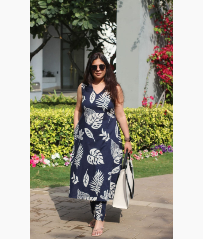 Design: A-line kurti with tropical leaf prints
