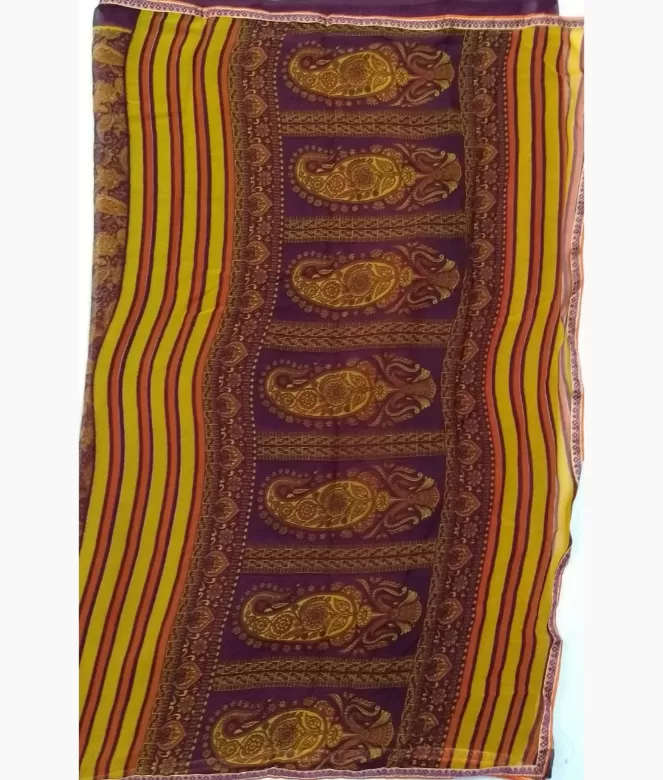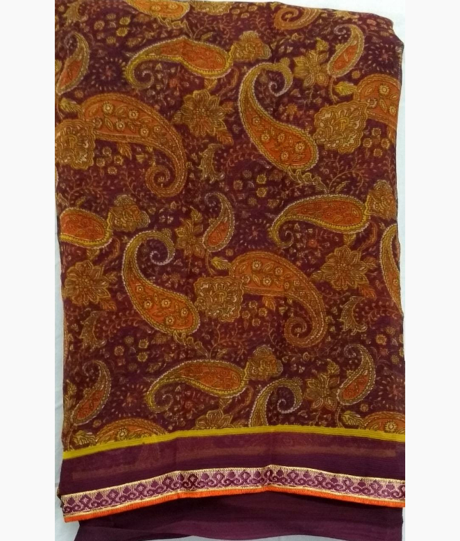 Border is of golden zari and thread work zari patti on saree. Matching same border of saree is on plain blouse for sleeves only.
