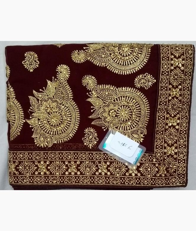 Sequence work on the outline of boota. Fine thread and sequence work on border of saree. Matching work of saree is on blouse for neck and sleeves.