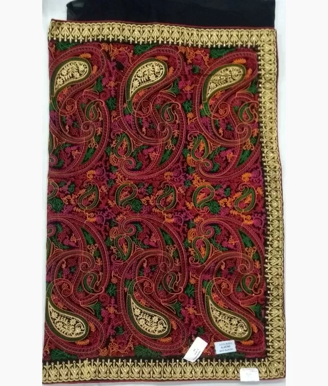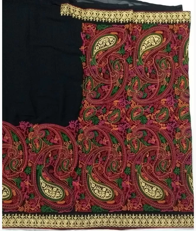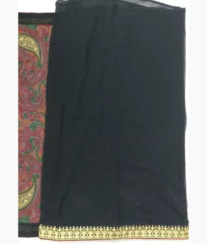 Border is of ambi design with jari and multi thread work with piping. Matching work of saree border patti is on blouse for neck and sleeves