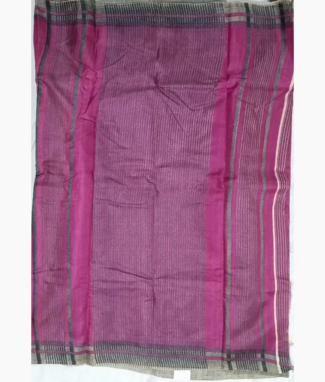 Border is of big ambi in multi colour thread jhardi in lehariya design in thread work on saree panel. Blouse is of contrast colour strips weaving design for all over.