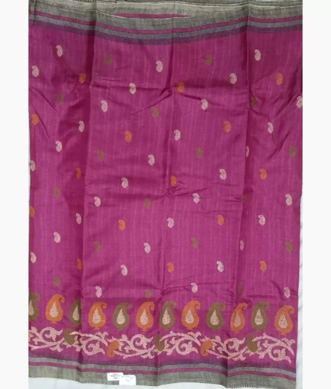 All over multi colour thread ambi design on saree. Pallu is of weaving strips on saree.