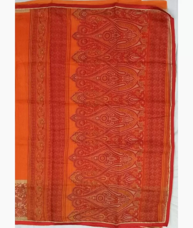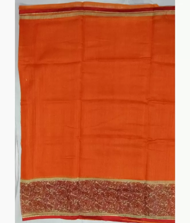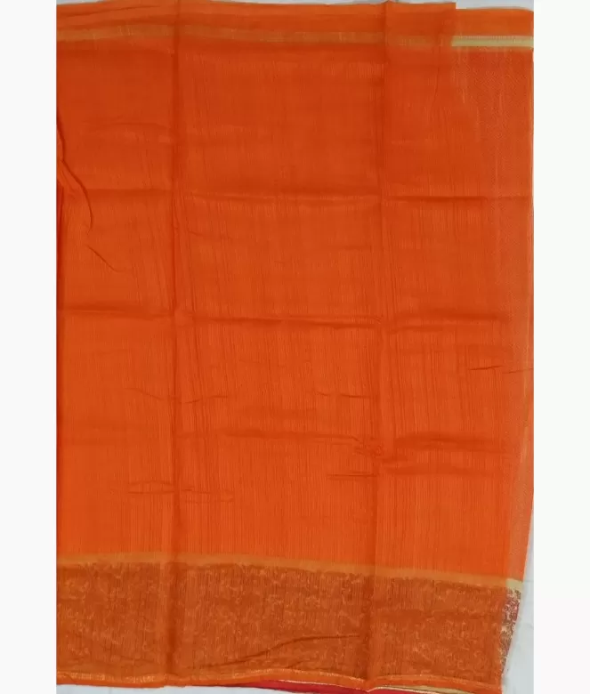 Border is of ambi jaal design with contrast colour and piping on saree. Matching same colour and fabric is of plain blouse.