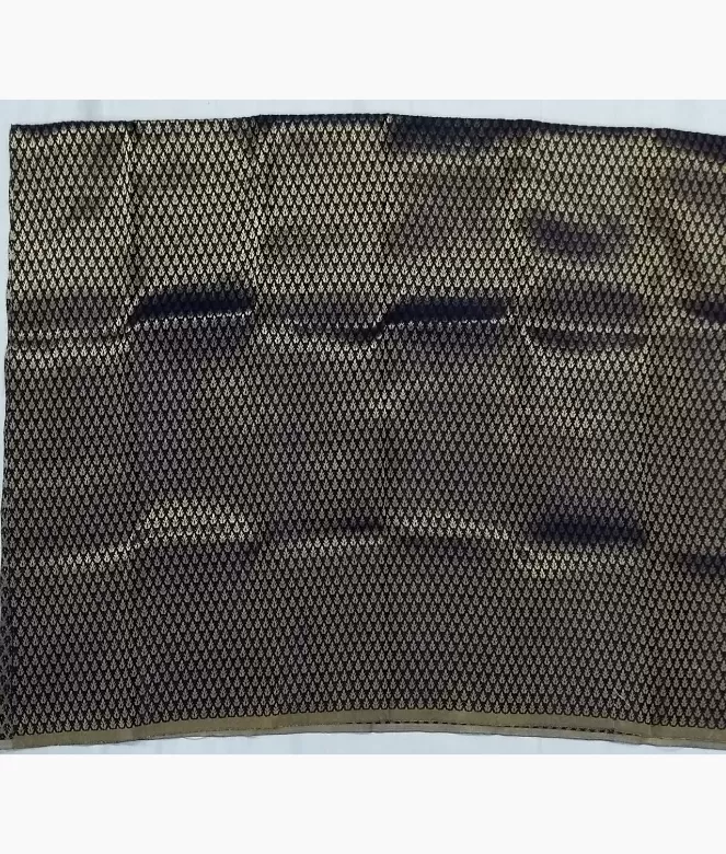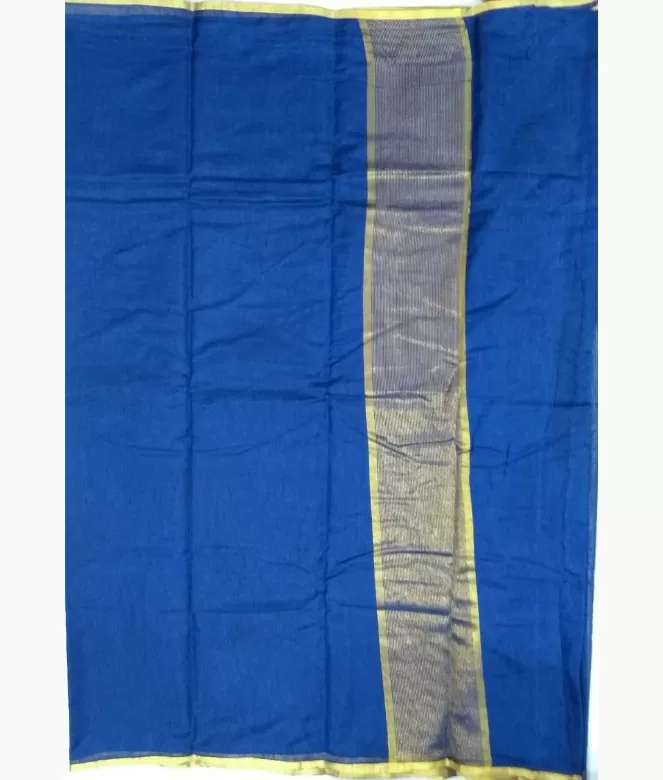 All over plain silk saree. Pallu is of golden colour small strip in zari with piping style golden zari border on saree.