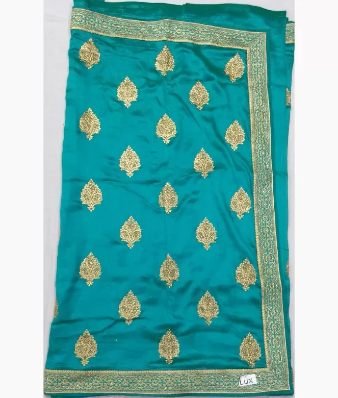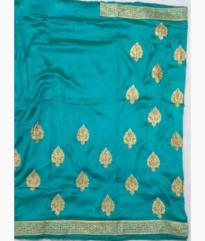 Border is of heavy zari jaal with sequence work on saree. Matching work saree border is on blouse Patti for neck and sleeves.