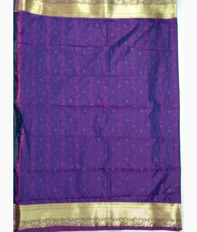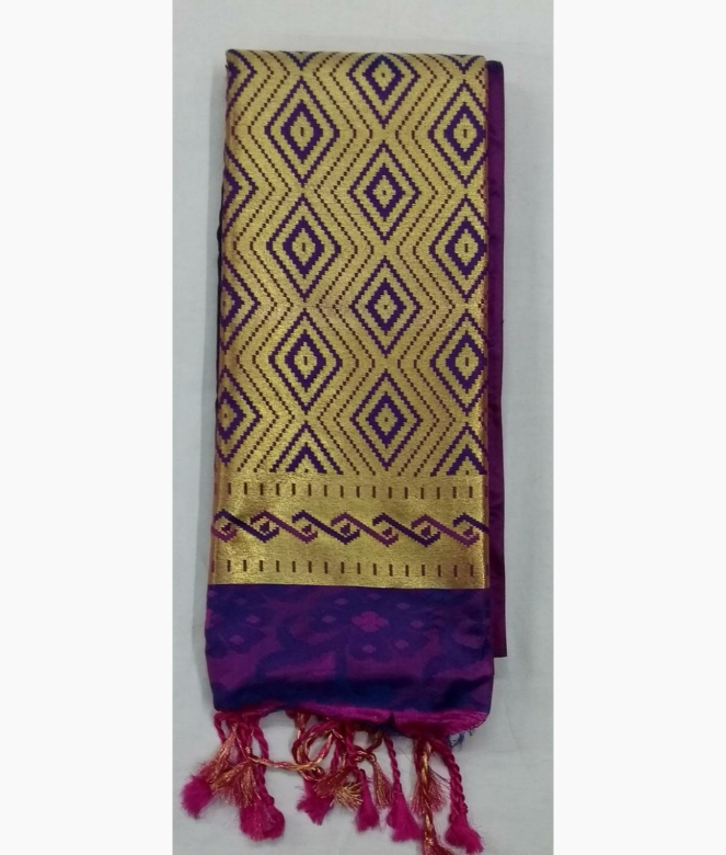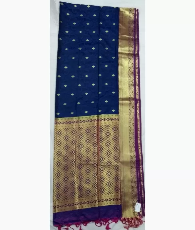 Kanjivaram designer saree with thread and zari work on all saree. heavy pallu in contrast colour with latkan of zig zag design of thread and zari work. High quality zari and thread work on border with flower and leaf design. Matching work of saree border is on blouse patti with embos jaal weaving for neck, back and sleeves.
