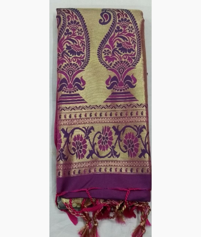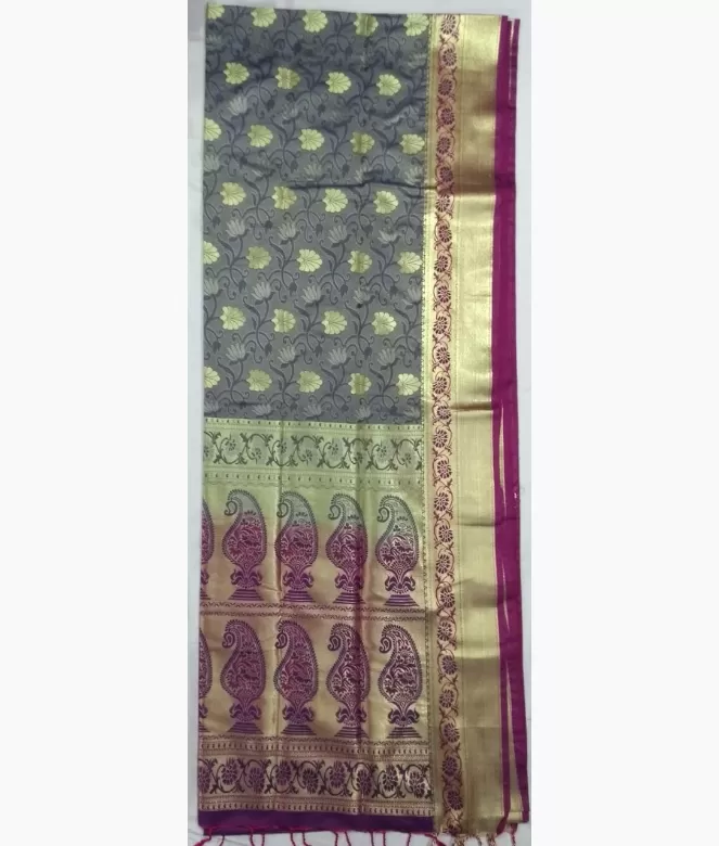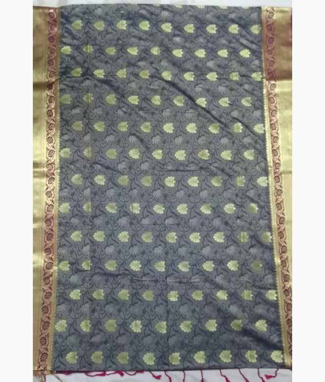 Complete kanjivaram jaal work on all over saree. Border is of leaf and flower design with golden colour heavy zari work. Matching work of saree border is on blouse patti for neck and sleeves.