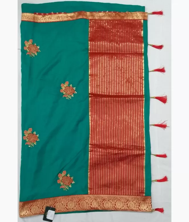 Green Saree Party Wear GreenRed Silk Saree Sapar2113