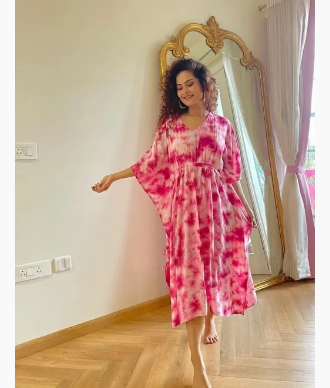 This is another amazing rayon kaftan in printed design. The dress is amazing for casual and daily wear purposes. The kaftan is available in different color combinations, and the look can be enhanced if you pair it with any bottom wear. This kaftan is avai