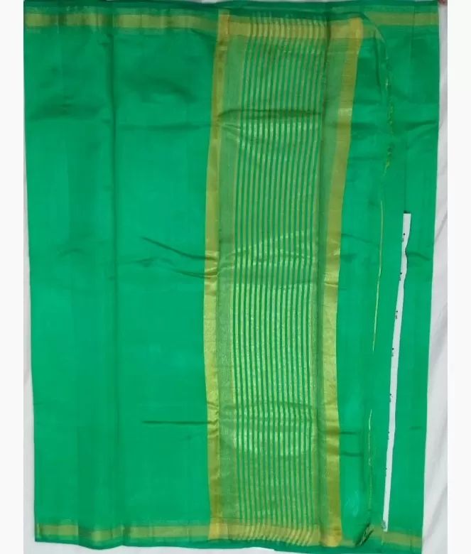 All over plain saree with golden strips pallu on saree in zari work.