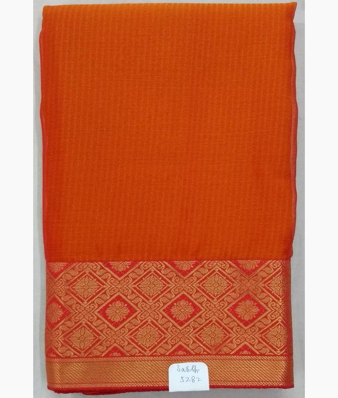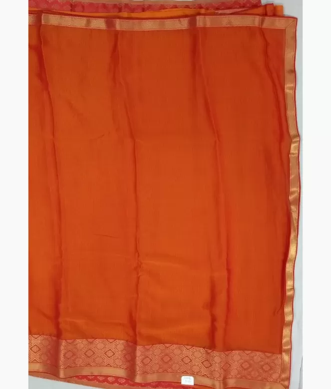 All over plain chiffon designer look saree. Pallu is of brocket border patti with golden colour zari work.
