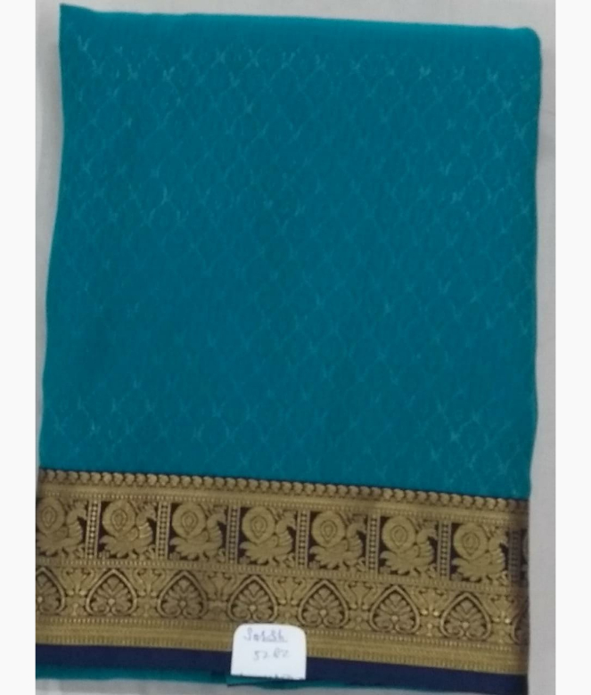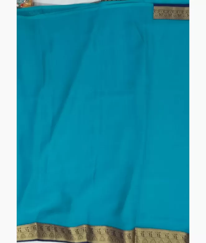 All over plain chiffon designer look saree. Pallu is of brocket border patti with golden colour zari work.