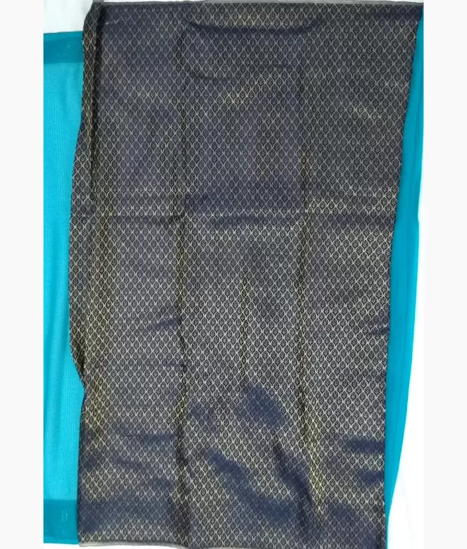 Border is of golden colour zari patti with two design pattern shows fine quality of work. Blouse is of matching same pallu border of saree of brocket fabric for back, neck and sleeves.
