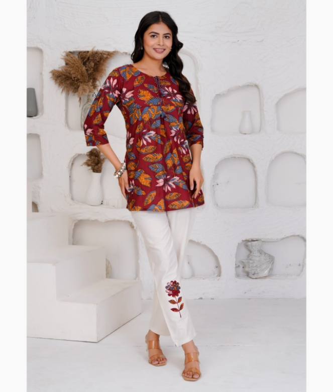 Add a touch of earthy elegance to your wardrobe with this stylish patchwork cotton brown co-ord set, perfect for the modern woman who loves comfort with character. Crafted from soft, breathable cotton, this set features a beautifully stitched silhouette that drapes effortlessly, making it ideal for day-to-night wear. The top showcases intricate patchwork detailing in complementary tones, adding depth and a handcrafted charm to the overall design.