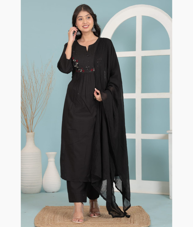 Embrace the elegance of summer with our beautifully stitched cotton black suit collection, designed to keep you cool, comfortable, and effortlessly stylish. Crafted from premium-quality breathable cotton, each suit is a perfect blend of traditional charm and contemporary flair. Ideal for warm-weather wear, these suits feature airy fabrics, soft textures, and skin-friendly finishes that make them perfect for all-day comfort.