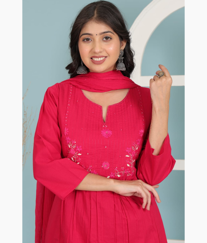Embrace the elegance of summer with our beautifully stitched cotton red suit collection.